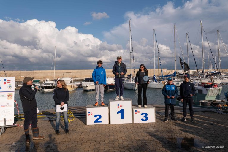 Al secondo posto sale Nicolò Santoro (Società Triestina della Vela), oggi secondo e terzo: chiude con 12 punti e molta grinta. Terzo è il maltese Nathan Montebello (15 punti), seguito da Antonino Mortillaro (Vela Club Palermo): quinto posto assoluto per la prima femmina, Vittoria Berteotti (Fraglia Vela Riva), che sorpassa in extremis Mia Paoletti (Portocivitanova), incappata oggi in un DNF nell’ultima regata che ha “consumato” lo scarto. Per tutti i più piccoli una gran bella esperienza agonistica, giocata in acque molto agitate e per questo estremamente utile alla formazione.