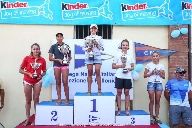 Nella tappa Toscana per le prime posizioni è stata una bella gara che alla fine ha premiato nella divisione A, Francesco Carrieri del Circolo Vela Bari, che con questa vittoria si candida fortemente alla vittoria finale del circuito. Prima ragazza e seconda assoluta Gaia Zinali (CV Antignano) che dopo aver risolto i problemi fisici di inizio stagione, sta maturando molto negli ultimi mesi e pone le basi per fare una bella stagione 2022. Bravi anche i gardesani Giovanni Bedoni e Victoria Demurtas (FV Riva entrambi) terzo e quarta in assoluto, così come Lorenzo Sirena (YC Cagliari) che chiude quinto. Vittorie parziali nelle varie prove per Carrieri e Zinali tre prove, e una ciascuna per Victoria Demurtas, Lorenzo Sirena, Lorenzo Rossi, Alessandro Verani, Alessio Bonizzoni e Davide Cosseddu.